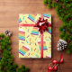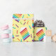 Add some colour to gifts with this bright and colourful wrapping paper that features a pretty pattern of slices of rainbow layer cake along with festive confetti sprinkles against a light yellow background.