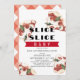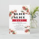 This cute "slice slice pizza" gender-neutral baby shower invitation features a white background with slices of pizzas. The reverse side features a white background with red gingham check patterns. Personalise for your needs. You can find more matching products at my store.