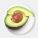 Avocado cut in half exposing the single seed and the various shades of green in the fruit