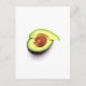 A ripe Avocado sliced open showing the seed and the different shades of green on a white background