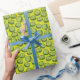 If you like pickles, you'll love the fresh tasty looking green cucumber pickle slices scattered all over this wrapping paper on a yellow-green background..