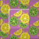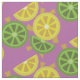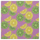 A lighter purple fabric with the pattern of colourful sliced and quartered lemons and limes . Make sure to choose the type of fabric that fits your project best .