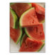 Watermelon (Citrullus lanatus (Thunb. ), family Cucurbitaceae ) is a vine-like (scrambler and trailer) flowering plant originally from southern Africa . Its fruit, which is also called watermelon , is a special kind referred to by botanists as a pepo , a berry which has a thick rind (exocarp ) and fleshy centre (mesocarp and endocarp). Pepos are derived from an inferior ovary, and are characteristic of the Cucurbitaceae. The watermelon fruit, loosely considered a type of melon – although not in the genus Cucumis – has a smooth exterior rind (green, yellow and sometimes white) and a juicy, sweet interior flesh (usually pink, but sometimes orange, yellow, red and sometimes green if not ripe). It is also commonly used to make a variety of salads, most notably fruit salad.