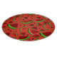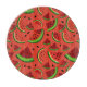 Vibrant and colourful pattern featuring various slices of watermelon, including both triangular and crescent shapes, set against a bright red background. Small black seeds are scattered throughout the design, enhancing the fruity theme.