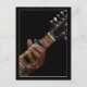 An image showing a hand with a brass slide on the neck of a guitar. Slide guitar is also known as "bottleneck" guitar.