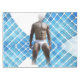 SlipperyJoe muscular man six-pack abs male white underwear grid blue white diamond-shaped tiles modern digital surface background realm artistic abstraction gay pride gifts LGBTQIA flesh and pixels collide unreal dreamscape fusion unique visuals bold design