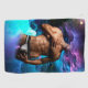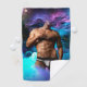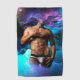 SlipperyJoe muscular man underwear bulge vibrant hues blue teal purple cloud-like abstraction gay pride gifts LGBTQIA artistic dreamlike abstract energy psychedelic surrealism cosmic effect surreal and imaginative background hand rests over chest