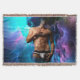 SlipperyJoe muscular man underwear bulge vibrant hues blue teal purple cloud-like abstraction gay pride gifts LGBTQIA artistic dreamlike abstract energy psychedelic surrealism cosmic effect surreal and imaginative background hand rests over chest