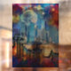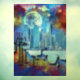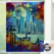 SlipperyJoe NYC graffiti moon surrounded swirling dramatic clouds sky intense colour gradients vivid surreal cityscape realism fantasy skyscrapers buildings mashup urban grit artistic cosmic dreamlike backdrop gay pride gifts LGBTQIA blues fiery reds purples yellows dreamlike almost sci-fi narrative warm cool tones drama energy