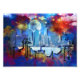 SlipperyJoe NYC graffiti moon surrounded swirling dramatic clouds sky intense colour gradients vivid surreal cityscape realism fantasy skyscrapers buildings mashup urban grit artistic cosmic dreamlike backdrop gay pride gifts LGBTQIA blues fiery reds purples yellows dreamlike almost sci-fi narrative warm cool tones drama energy