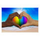 SlipperyJoe vivid rainbow gradient heart interracial male hands bright beach background scene gentle ocean waves meeting sand radiant sun shining overhead LGBTQIA gay pride gifts classic queer energy expressed embracing differences inclusion joy unity through love beyond differences warmth inclusivity shared humanity glowing uplifting diversity atmosphere