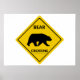 SlipperyJoe's bear crossing sign bear silhouette walking yellow background symbolising strength nature cautionary warning whimsy colour palette black yellow gold wilderness adventure artistic gay pride gifts LGBTQIA