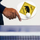 SlipperyJoe's bear crossing sign bear silhouette walking yellow background symbolising strength nature cautionary warning whimsy colour palette black yellow gold wilderness adventure artistic gay pride gifts LGBTQIA