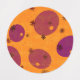 SlipperyJoe's Happy Hanukkah Jewish Hebrew jelly-filled doughnut representation Chanukah gifts decorations Judaism religion small asterisk-like symbols artistic purple orange oval shapes playful arrangement artistic abstract pattern bright background