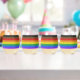 SlipperyJoe's Inclusive gay pride flag textured ru Stemless Wine Glass
