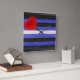 SlipperyJoe's leather pride flag black royal blue white bars bold red heart wooden nine alternating stripes representing love passion care community festivals education family reunions background rawhide‑toned textured surface subculture and kink community artistic gay pride gifts LGBTQIA diversity inclusivity edginess identity affection safety sanity consent