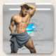 SlipperyJoe's Man towel broken white brick wall ba Coaster