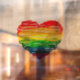 SlipperyJoe's pride scribbled heart shape drawing rainbow love inclusivity message transcends boundaries gradient rainbow colours vibrant colourful illustration gay pride gifts artistic LGBTQIA uneven lines radiating outwards red orange yellow green blue purple depth dimension