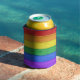 SlipperyJoe's pride wooden flag horizontal rainbow Can Cooler