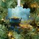 SlipperyJoe's Saint Patrick's Day large ornate pot gold coins fantasy treasure folklore bokeh effects magical atmosphere tall lush grassy area vibrant colour small flowers plants misty blue dreamy background artistic light particles dynamic motion LGBTQIA gay pride gifts