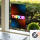 SlipperyJoe's throb rainbow-like gradient thick capitalised letters dotted texture filling blurred blue orange red hues swirls intensifying visual impact neon dreamscape ambient lighting psychedelic neon signage art gay pride gifts edgy branding LGBTQIA hypnotic design artistic charged word choice