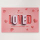 SlipperyJoe's Valentine's Day gifts romantic tone scattered heart shapes expressing love appreciation uplifting inclusive and affectionate tone vibrant celebratory graphic warmth affection soft pink canvas background you are loved text LGBTQIA white letters red outlines shadow artistic three-dimensional standout effect playful 3D-elements bold typography