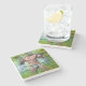 The coasters are gorgeous, a quality feel and heavy weight. They look like a precious archeological find. A rustic stone juxtaposed with a modern floral black and white print. I like the way the print goes slightly imperfect on the cut stone edges giving them a kind-of natural beauty.