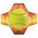 SlipperyJoe's yellow softball fireball flames raspberry windmill dinger snow coning background fiery solar-flare explosion swirling orange red gold bursts raw athletic energy cosmic art big bang moment genesis LGBTQIA unstoppable momentum artistic raw velocity of pitch dramatic symbolic gay pride gifts bold red stitching