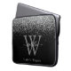 Modern laptop case in black and sliver glitter, elegantly adorned with your script monogram, first name and initial.