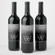 Modern wine labels in black and sliver glitter, elegantly adorned with your script monogram, first name and initial.