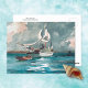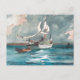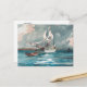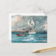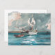 A postcard with the fine art painting by Winslow Homer (1836-1910) Sloop, Bermuda (1899). A seascape of a sloop in the aqua blue waters off Bermuda. Homer travelled to Bermuda, Cuba and Florida. Many of his paintings are from this area.