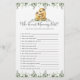 Sloth themed baby shower who knows best game card features a watercolor sloth illustration and watercolor greenery eucalyptus garland and elegant handwritten style font.