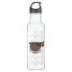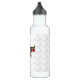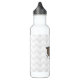 A water bottle for teachers featuring an illustration of a sloth hanging from an apple tree branch. Background is light grey chevron. Personalise the name.