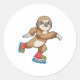 Sloth as Skater with Inline skates Classic Round Sticker