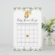 Sloth themed baby shower bingo game card features a watercolor sloth illustration and watercolor greenery eucalyptus garland and elegant handwritten style font.