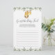 Sloth themed baby shower guess the baby food game card features a watercolor sloth illustration and watercolor greenery eucalyptus garland and elegant handwritten style font.