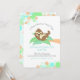 Cute gender neutral sloth baby shower theme invitation set featuring fun and colourful confetti dots in shades of teal, green and peach and an adorable baby sloth.