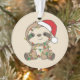 The sloth at Christmas with fairy lights. Funny animals with gifts and snow for the holidays. A sweet Christmas greeting. Sloths are cute animals and perfect for Christmas.