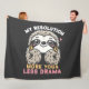 Cosy fleece blanket featuring a cute sloth with the phrase "More Yoga Less Drama" in pastel colours on a dark background. Perfect for yoga lovers, sloth fans, or as a thoughtful relaxation gift for anyone who loves comfort and style.