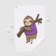 Sloth Hugging Tree Branch Wearing Purple Golf Towel