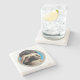 The coasters are gorgeous, a quality feel and heavy weight. They look like a precious archeological find. A rustic stone juxtaposed with a modern floral black and white print. I like the way the print goes slightly imperfect on the cut stone edges giving them a kind-of natural beauty.