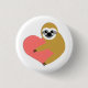 sloth character hugging heart button pin