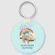 A keychain with an illustration featuring a funny brown sloth happily lazing on a tree branch.