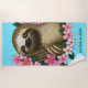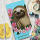 Sloth Pink Flowers Beach Towel