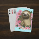 A cute sloth sitting amongst pink flowers against a backdrop of blue