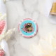 A cute sloth sitting amongst pink flowers against a backdrop of blue