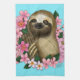 Sloth Pink Flowers Tea Towel