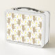 This is a standard metal lunchbox that appears to work just fine. We designed this box ourselves with an uploaded photo and custom text on the front and back. It looks absolutely beautiful except the front of the lunchbox is not centered like it shows in the photo. The print borders don't align with the inset flat part of the box where the preview photo online showed it perfectly centered in there. The back looks nice and centered though.