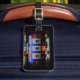 Las Vegas gambler baggage tags for "high rollers' or wannabe's.Fun design for people who like to gamble on slots from the USA to Macau. This luggage identification tag design shows a winning bet. Lucky 777.