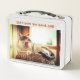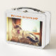 This is a standard metal lunchbox that appears to work just fine. We designed this box ourselves with an uploaded photo and custom text on the front and back. It looks absolutely beautiful except the front of the lunchbox is not centered like it shows in the photo. The print borders don't align with the inset flat part of the box where the preview photo online showed it perfectly centered in there. The back looks nice and centered though.